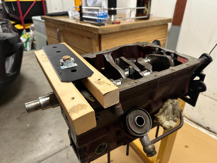 Mounted up to the engine stand studs removed