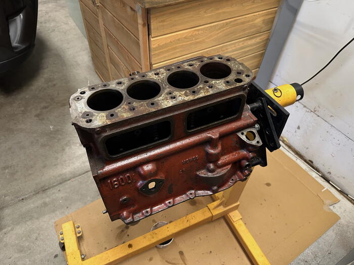 Mounted up to the engine stand, studs removed