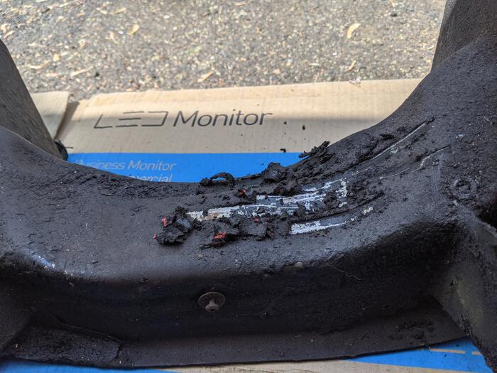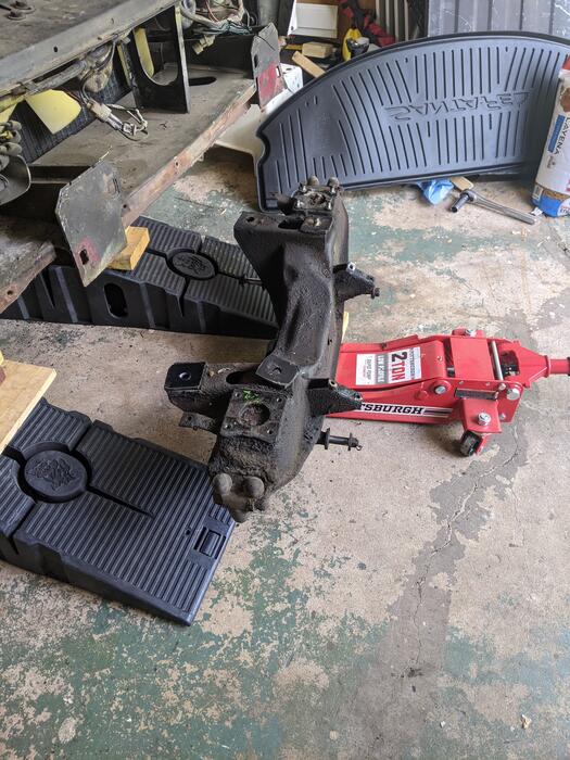 The wishbone arms are cleaned up and primed, I'll work on some of the other bits this week with the goal of getting it back together next weekend. I'm on the fence about dropping the front cross member. It certainly is nasty and needs to be cleaned up, but I'm not yet sure when else it will entail. More research needed.