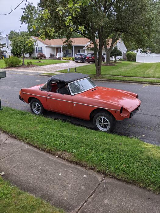 I found a 1976 MGB for sale, and after looking at it a while it came home with me on last Sunday. The body is in good shape, there is a little bondo on the back trunk but otherwise it looks solid. So now I have two MG's sitting in my 1 1/2 car garage. While they both fit it is a little tight to work on either one. What this means is that one will have to go to get me out of trouble with the boss.