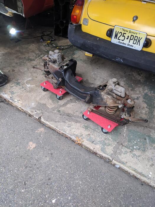 In the mean time I've modified my plan a bit. I'm going to move the mechanical parts that I refreshed from the 77 to the 76. Last weekend I finished moving the rear end and this week I started disassembling the red car's front axle to swap with the yellow car.