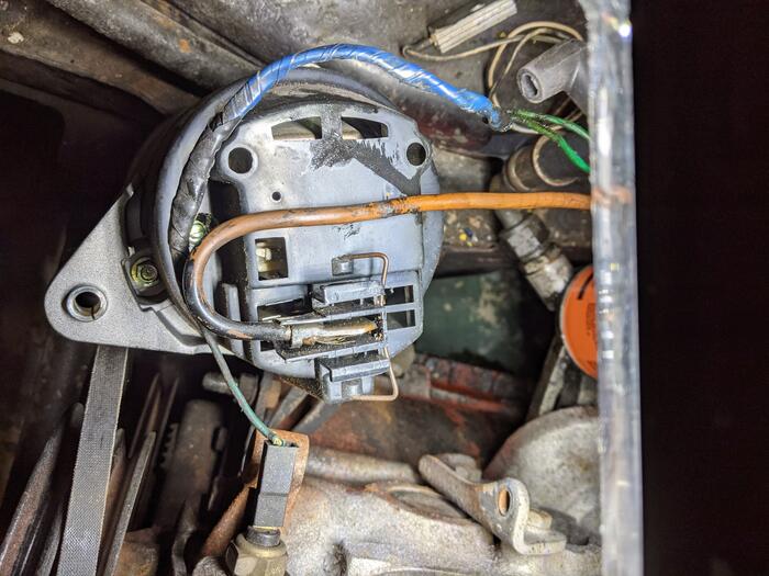 This week I've got to sort out the alternator, I installed a new battery which is doing well starting the car, but I've been forced to put on the charger as the alternator isn't doing it's job. I suspect it isn't connected properly as it only has a single wire running to it, but it isn't original so I have to do some research.