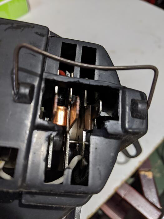 Looking at the alternator on the bench I cannot find any markings or ratings. On the back are three copper tabs, I believe that I should connect the other two wires to the tabs but I'm unsure if there should be a plug or just tabbed on. more research.