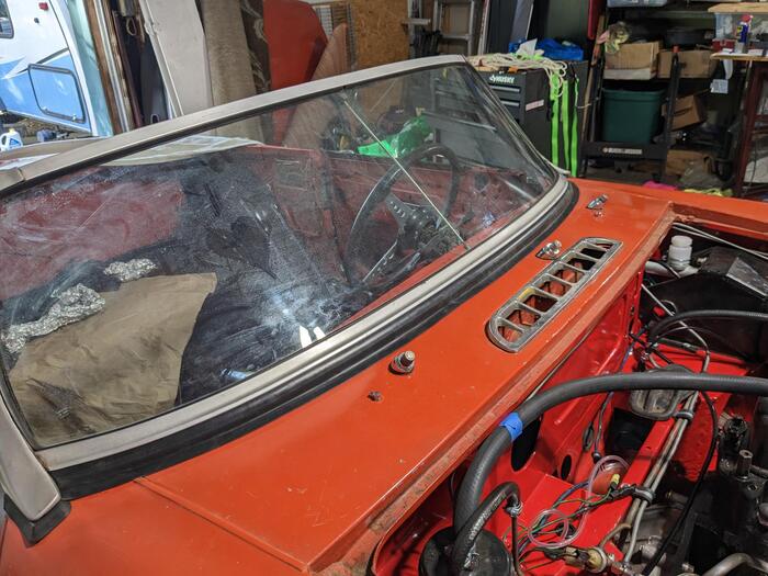 The goal was to have it running at the end of May and with only two mores days left in the month that isn't going to happen. Oh well what can you say life get busy some times. BUT I did have a bit of success today, I managed to get the windshield installed on the car with the new bottom seal. After reading about this on the forum I was dreading it, but I didn't think it was too bad. About 45 minutes to set the new seal into the window track and around 2 hours by myself to get the 4 bolts locked in and the seal flattened.