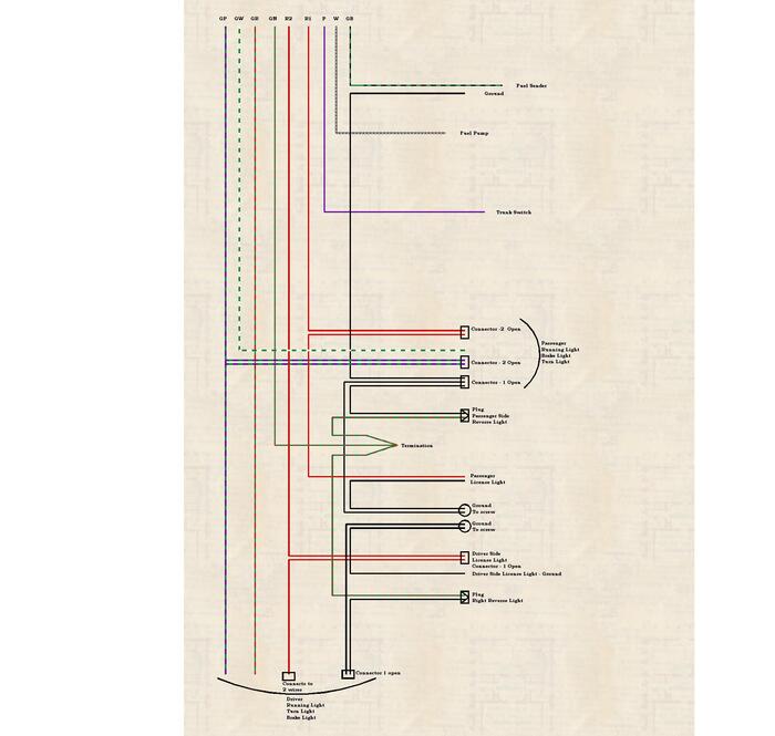 This is a wiring diagram of the rear wire harness I drew up a while ago, just putting it here for reference if it can help anyone out. (I want to complete this for the dash and main harness as time permits.)