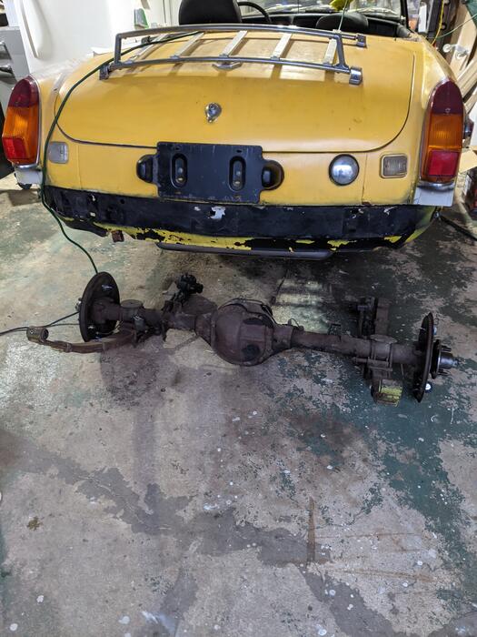 Yesterday I started working on the removal of the rear axel. Lots of help from previous articles on this site. The worse job was removing the bolts from the drive shaft. All the nuts were rounded and wouldn't hold a wrench.