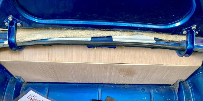 Built new back panel from 1/4" plywood. PO had butchered the original to install 4 audio speakers.
