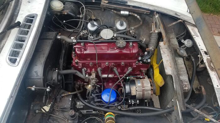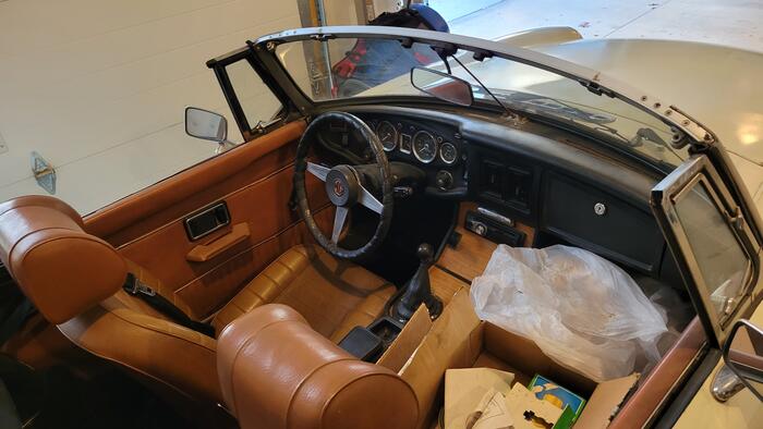 MGB #2, I acquired and originally thought it would be a donor vehicle. But I feel like it is in too good of shape to start robbing parts from. It is only a tune up away from being a regular driver. It has a beautifully rebuilt engine, new clutch and completely rebuilt front suspension. It has the original SU carbs. You can get it started with a squirt of starter fluid, but it needs to have the carbs adjusted to get it on the road. Has a black soft top that is in good shape.